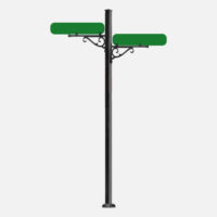 Designed with a two 6″x 36″ street signs sitting atop ornate s-scroll hanging sign arms, the SPQ3-3A includes a 14’ long, 3” square aluminum pole with a low-profile slip-over base and an end cap finial. The aluminum components are powder-coated to protect against the elements and daily wear and tear.